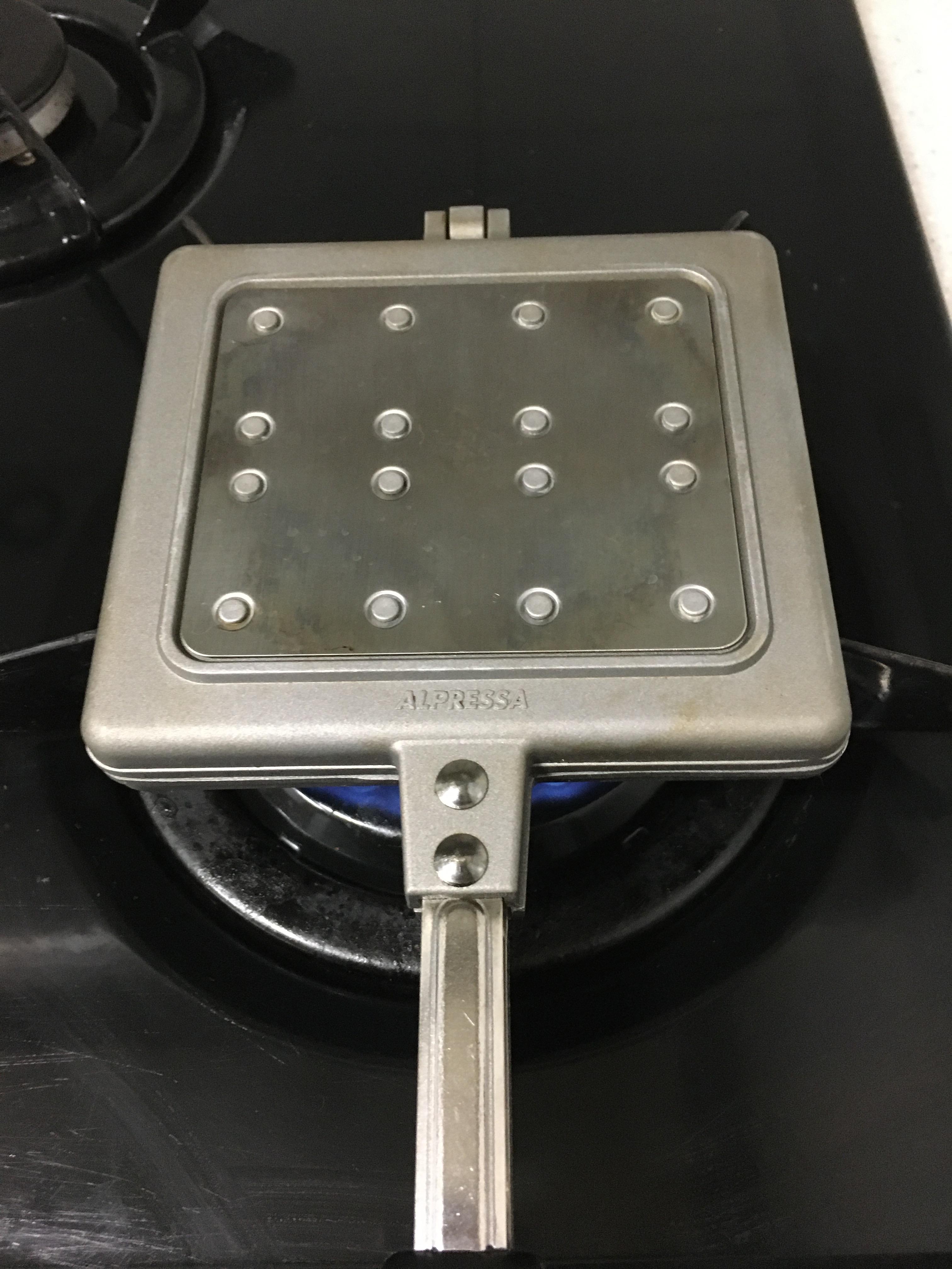 와플팬 양면을 10초쯤 달군 뒤